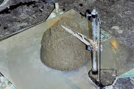 試験は円すい形の器具(スランプコーン)にコンクリートを詰めて上から棒で打ち固め、器具を抜いたときの“沈み具合”を測ります。沈みが少なければ硬く、沈みが大きければ流れやすい状態とわかります。たとえば道路用では沈みが少ない方がよく、壁や床のような場所ではほどよい流動性が必要です。The Constructor