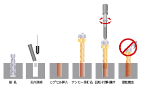 接着系アンカーは、普通のボルト締めや打ち込みとは違い、接着剤の力でコンクリートと部材をガチッと固定してしまう方法です。まるで“鉄を糊でくっつける”ような手法ですが、強度は非常に高く、建築現場でも重要視されています。