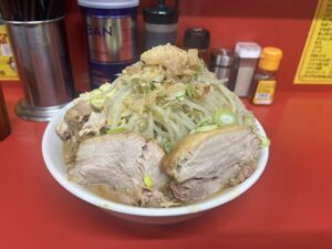 もやしはスープにしっかり浸って、次郎系らしいおいしさだった。麺は平麺のちぢれで、スープとの絡みが絶妙。