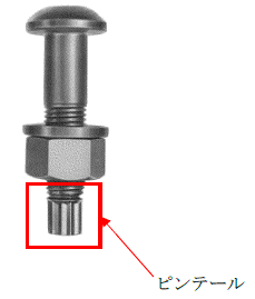 通常のボルトはナットを回して締め付け力を調整しますが、ピンテール付きボルトは**あらかじめ細く割れやすい部分(ピンテール)が設けられています。**所定の締め付け力に達するとピンテールが自然に破断して飛び、その状態で「適正な締付力が確実に入った」ことを確認できます。